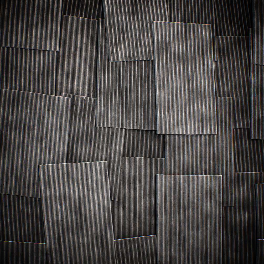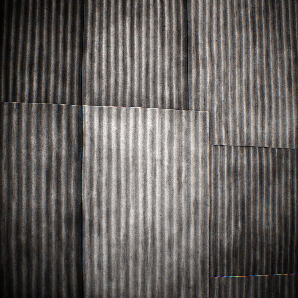 Stack of corrugated metal sheets.