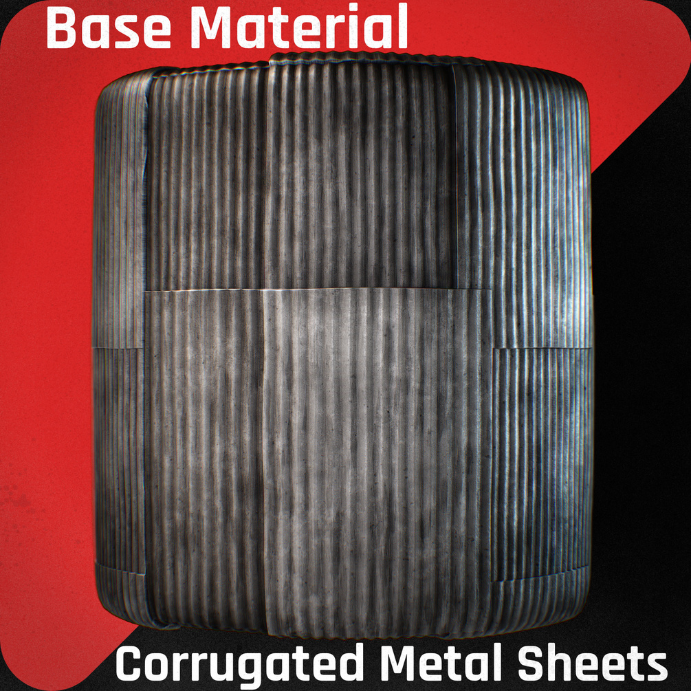 - Recommended for mid-ground or background props. For up close or hero props I suggest model the metal sheets, you can use this texture as base to work on
